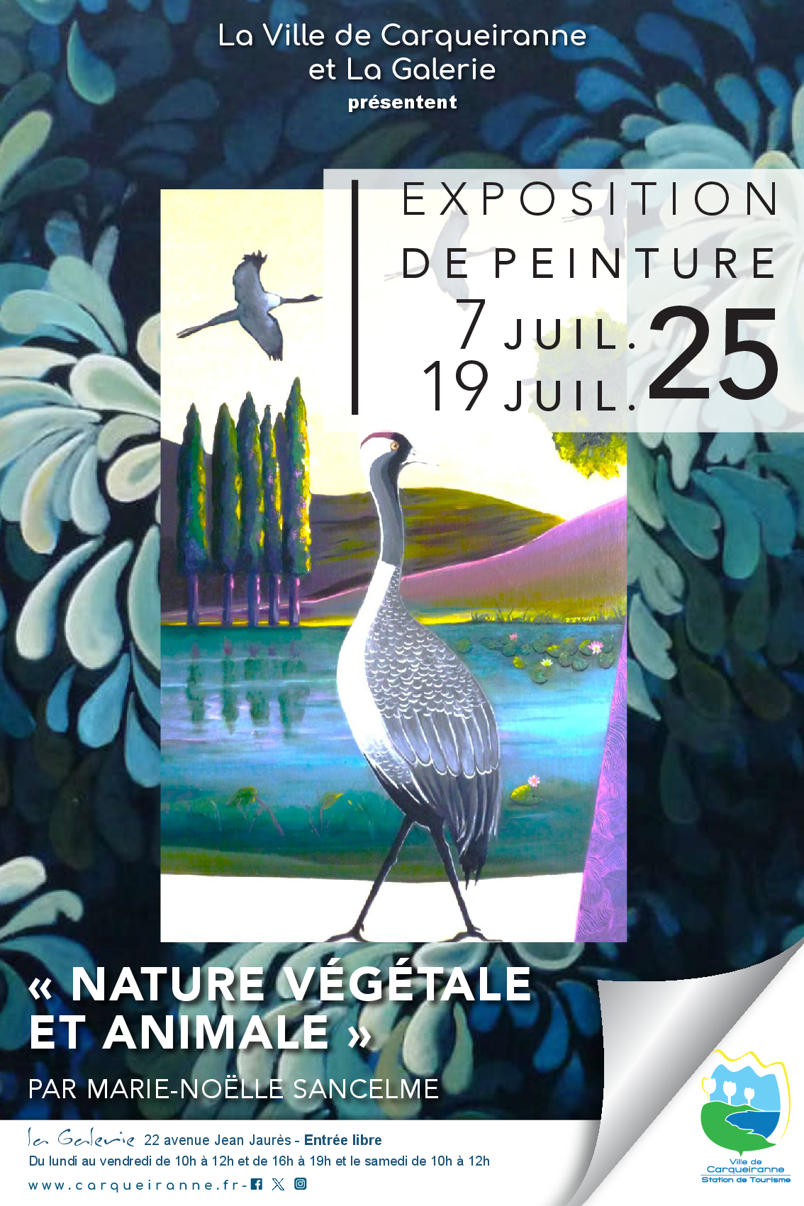 Du 04/03 au 01/04/2026 le mardi, mercredi, jeudi et vendredi de 9h à 12h30 et de 14h à 17h30. Le samedi de 9h à 12h30. Vernissage le samedi 7 mars.