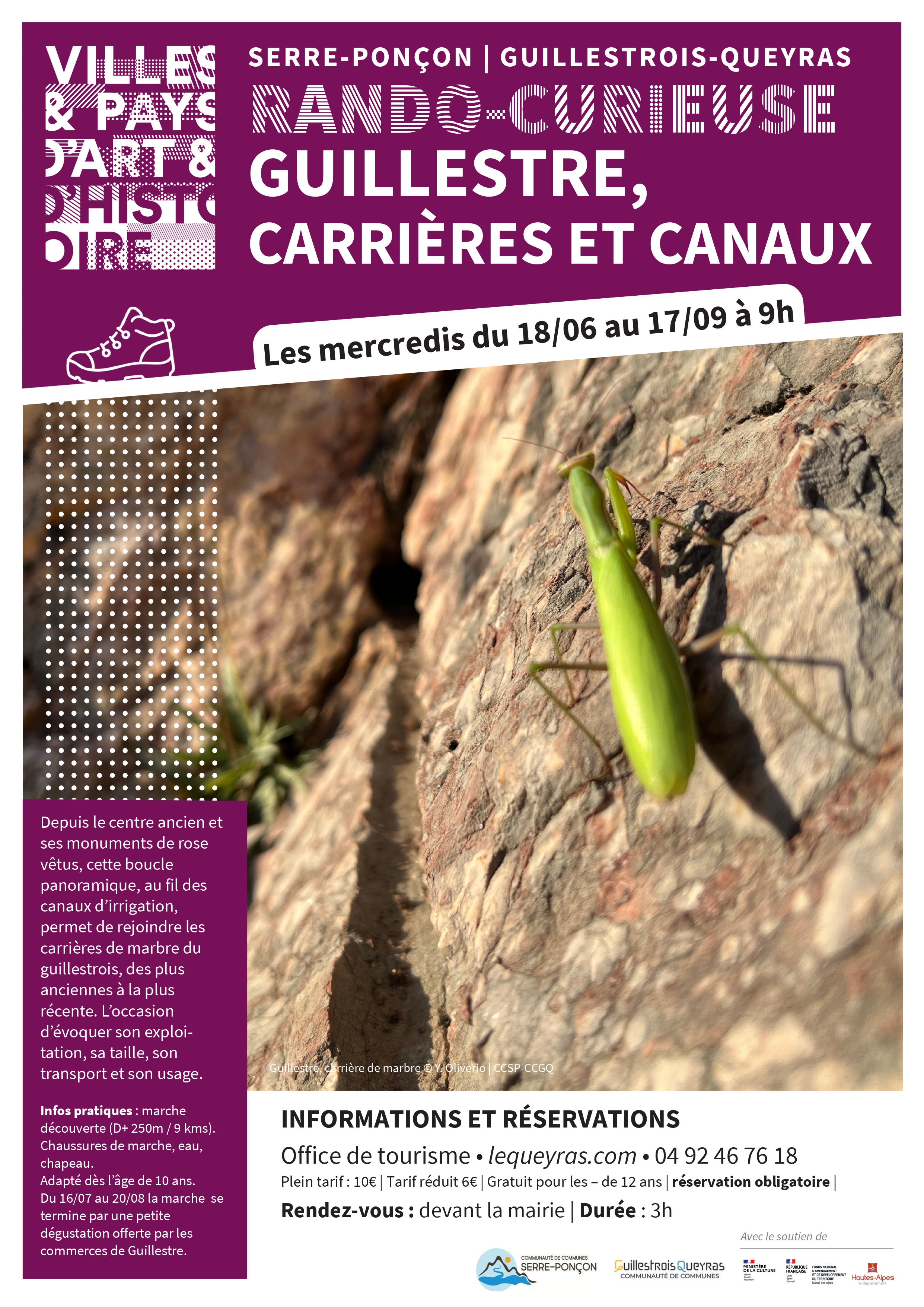 Réservation à venir auprès des Offices de Tourisme.
